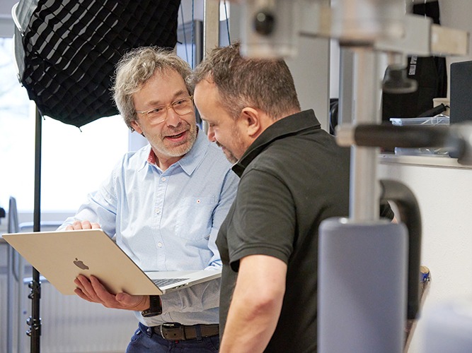 Wir finden einen Draht zu den Menschen, die wir fotografieren, und sorgen dafür, dass das Shooting entspannt und mit Spaß abläuft. Dank unserer fundierten Erfahrung im medizinischen Umfeld agieren wir während des Shootings dezent und respektvoll. Wir wissen genau, wann wir präsent sein sollten – und wann Zurückhaltung gefragt ist.